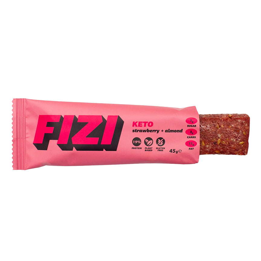 FIZI Baton proteinowy KETO Migdał i Truskawka 45 g – wegański baton o niskiej zawartości węglowodanów